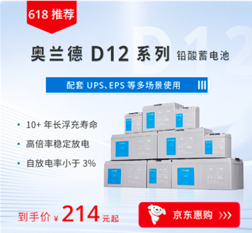 奥兰德 D12 系列电池,可配套 UPS、EPS等使用,满足电信、电网、金融、轨道交通、石油化工、智能制造、医疗设备等多场景对蓄电池安全可靠、长寿命免维护、绿色低碳的备电及应急供电需求。