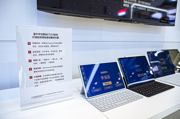 华为擎云携手合作伙伴打造擎云智慧金融-无纸化会议解决方案,具备全场景高效安全办会能力,能有效解决金融机构办会痛点。该方案以华为擎云C系列平板为核心,提供会议、文件、办会、管理全流程安全管控;会前一键创会,一键入会,会议期间基于HarmonyOS分布式能力,提供一对多会务文件实时分发与一键投屏、一键分屏等便捷会控操作;参会人员还可以使用HUAWEI M-Pencil(第三代)手写笔在华为擎云 C7上高效原笔迹批注,提升参会体验;会后支持敏感文件一键销毁,守护信息安全,助力快速进入下一场会议筹备工作。无纸化会议方案在提供高效会议管理的同时,降低会议期间信息安全风险,同时用数字资料取代纸质资料,节约办会成本并响应双碳号召。
