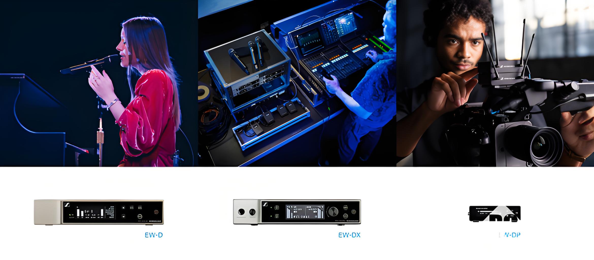 展会中,森海塞尔重点推出了Evolution Wireless Digital家族的EW-DP SKP直插式发射机和EW-DX四通道Dante接收机。EW-DP SKP凭借其板载32位浮点录制功能和134dB的超宽发射机动态范围,能够捕捉丰富的声音细节,并确保音频质量。同时,其micro SD卡槽设计也提供了音频安全备份的功能。而EW-DX四通道Dante接收机则支持多种网络模式,并具备高带宽和等距分布功能,使得频率规划更加便捷。