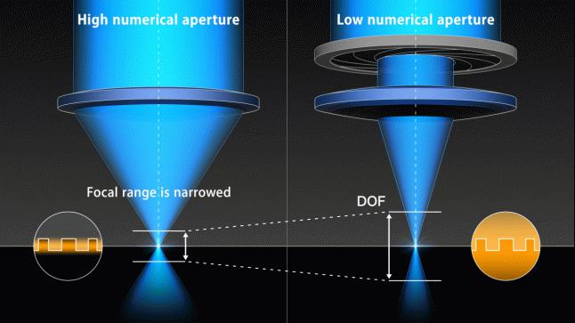 减小NA扩大DOF,可根据器件种类选择合适的NA(示意图)