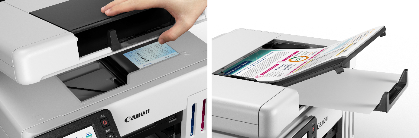 佳能恭喜系列GX6580则以高颜值、紧凑机身的设计赢得了市场的青睐。无论是酒店、餐饮企业,还是公司前台、医院诊所、银行柜台、租车公司等,只要有便捷打印的需求,GX6580都能轻松应对。其前部正面ADF输稿器的设计非常适合小空间使用。在扫描文件时,只需正面放置原稿即可同时扫描双面,免去复杂的翻面工作。若需扫描、复印身份证件,只需将证件放置在稿台的右下方,不需要完全打开盖板,滑动证件即可取走。轻松之间,完成证件的清晰复印和扫描,获得了用户的好评。佳能恭喜系列GX5580则多用于共享打印场景,通过大容量双纸盒、高速打印和连续内部处理的功能,GX5580有效解决了共享打印场所长时间等待和排队的问题,大大提升了工作效率。此外,低成本、轻运维的特点使得GX5580在部署和开发方面也更加便捷。