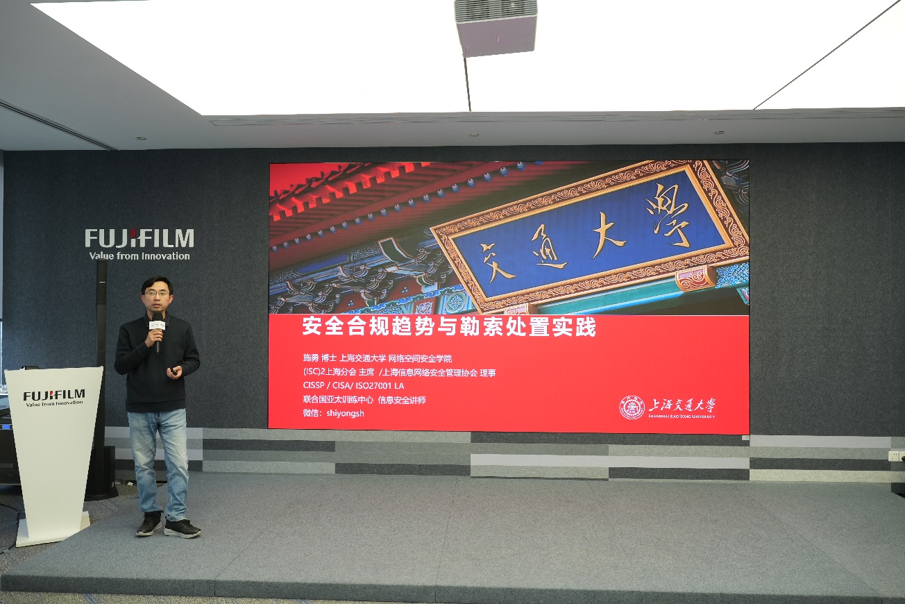 ISC2 信息网络安全管理协会上海分会主席/上海交通大学网络空间安全学院施勇博士以大量详实的数据和典型案例详尽阐述了网络威胁与勒索攻击对企业造成的巨大损失,甚至是毁灭性打击,并重点分享了网络攻击发展趋势与行业变化,以及通过防御、应急、响应机制同时提升员工安全意识等应对网络攻击与勒索。富士胶片商业创新(香港)网络安全业务发展负责人Raymond Poon 则分享了香港公司致力于实现AI与网络安全普惠化愿景,即让人工智能和网络安全变得可负担和触手可及,他还介绍了在香港地区与Network Box 合作为医疗、教育、高端会员俱乐部等提供统一威胁管理与安全托管服务的经验。
