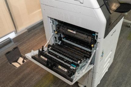 无钉装订技术有效减少了新资源的使用,实现了节能减排。设备在运行噪音控制方面也表现出色,新开发的A3装订器、新走纸路径设计以及优化的自动双面输稿器等多种降噪技术,共同打造了一个更加安静、环保的工作空间。