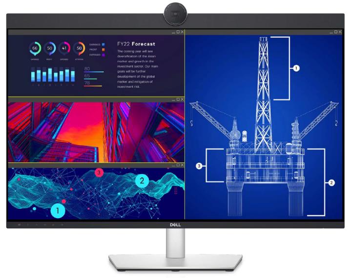 戴尔U3223QZ视频会议显示器同时配备Dell Display Manager的Easy Arrange功能,内含38个预设窗口分区,可定制多达5个窗口,用户能够轻松地在单个或多个屏幕上平铺数个应用程序,有效提高多任务处理能力。