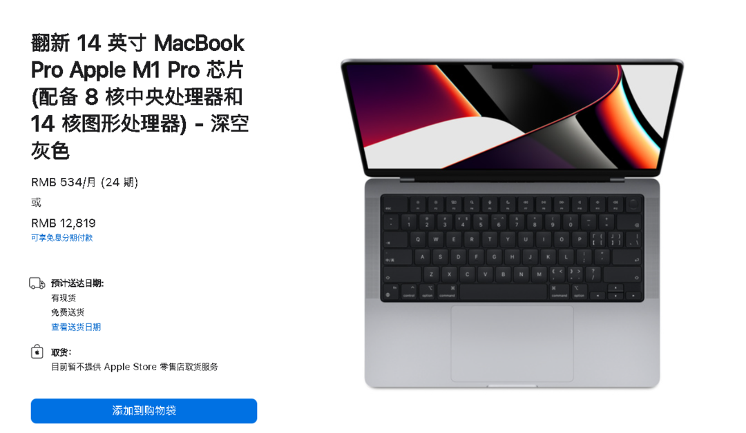 国行版翻新机也下调了,比如搭载 8 核中央处理器和 14 核图形处理器 M1 Pro 芯片的 14 英寸 MacBook Pro 2021 翻新机原售价 13499 元,现在售价 12819 元,便宜了 680 元,而全新机卖 14999 元,相当于是便宜2180元。