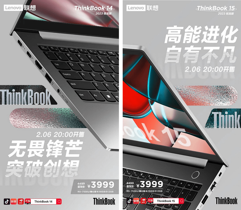 目前全新ThinkBook 14/15 2023 锐龙版已在ThinkPad京东自营旗舰店、天猫ThinkPad官方旗舰店、ThinkBook京东自营旗舰店、抖音ThinkPad官方旗舰店、官网商城正式开售,售价仅为3999元。火热职场“开工季”,开工大吉换新机,祝愿每一位职场新青年在新的一年里前途璀璨,勇敢破局!