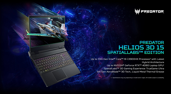 2023年4月20日在主题为“探索新平衡”的宏碁全球春季新品发布会上,宏碁发布全新电竞游戏本阵容,全系列采用全新设计,并搭载最新第13代英特尔酷睿处理器与NVIDIA® GeForce RTX™ 40 系列GPU。全新掠夺者 刀锋 X 与 掠夺者·擎 Neo 电竞游戏本搭载高效能硬件,并提供顶尖的屏幕选择,专为游戏玩家与创作者而生;低调简约的 掠夺者 刀锋 14外表纤薄但性能强大,适合于各式环境使用,专为工作与娱乐所设计;掠夺者 战斧 15 SpatialLabs 裸眼3D版电竞游戏本使玩家沉浸在3D立体游戏世界,同步支持超过70 款游戏,以3D立体技术打造新的风貌与体验,并将陆续支援更多游戏。
