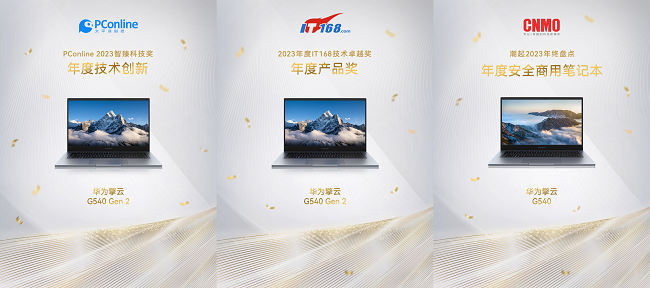 华为擎云 G540作为华为擎云2023年重磅推出的智慧可靠商务本,其搭载的第13代英特尔?酷睿?处理器带了更加强大的性能表现;且出于华为擎云对品质的要求,搭配了可扩展式内存、华为超材料天线、防泼溅键盘等产品特性,能够充分满足多元场景下企业安全效率并重的转型需求,成功跻身2023年度热门商用笔记本产品之一;同时在年终科技类产品评选中,华为擎云 G540还荣获了太平洋电脑网2023智臻科技奖“年度技术创新”、IT168技术卓越奖“年度产品奖”、手机中国潮起2023年终盘点“年度安全商用笔记本”等多项产品奖项。