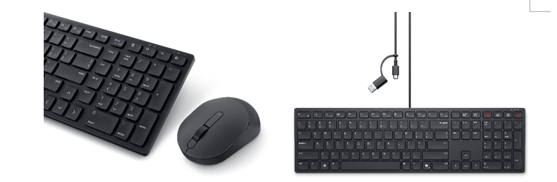(左图)戴尔静音键盘和鼠标(KM555);(右图)戴尔有线协作键盘(KB525C)