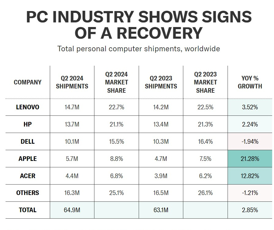 PC产业终显复苏迹象,2024年出货量预计增长3.4%