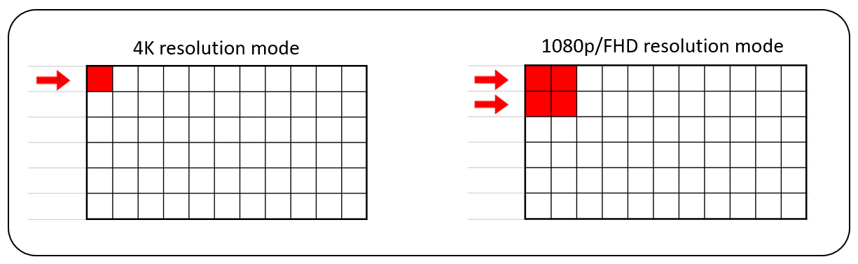 4K模式切换至FHD模式时,四个像素合并为一个