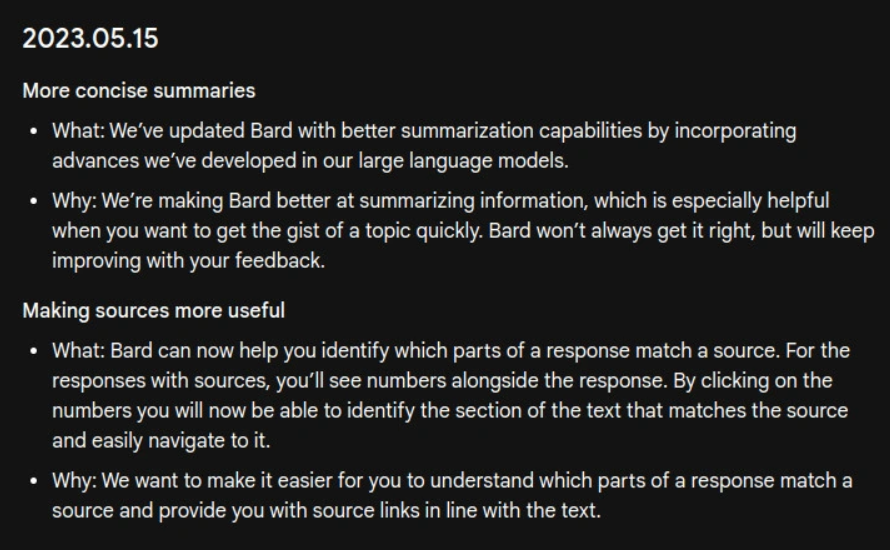 Bard 在部署本次更新之前,在和用户的问答聊天中,会输出一长串内容,然后在底部附上相关的链接。用户无法弄清哪些内容来自哪些链接。