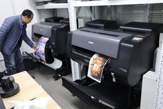 很多的漫画、版画设计师是小型印刷工作室的主要客户,他们对画面的色彩和层次细节处理要求都较高,与此同时,越来越多的设计师们喜欢在自己的作品里加入荧光色的元素,因为这样会使得作品的色彩变得更加突出、吸引眼球。但在加入荧光色元素设计以后,问题也随之而来,一般打印输出难以呈现荧光色的诸多特点,如在电脑屏上显示的鲜亮的颜色和层次丰富的细节等画面,因此打印效果往往达不到这些设计师们的要求,难以令终端消费者满意。打印的效果达不到客户的要求,客户自然就会流失,这一直是困扰小型印刷工作室的问题。小器印物所负责人顾先生讲到:“机缘巧合我们发现,佳能新开发的GP-520使用的水性颜料荧光色墨水,打印出的图像不仅色彩漂亮,不易褪色,而且细节特别到位,屏幕上通透的画面感一样可以在打印介质上实现,这促成了我们和佳能缘分的开始。”