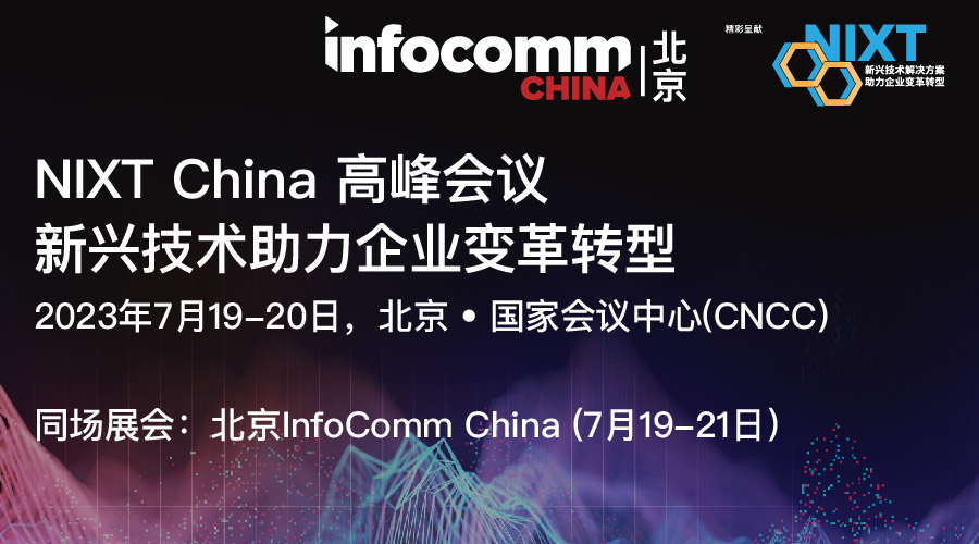聚焦新兴技术,推动行业数字化转型的领航科技峰会— “NIXT China 高峰会议”将于7月19-20日,和北京InfoComm China 2023 展会同时在北京的国家会议中心(CNCC)举办。