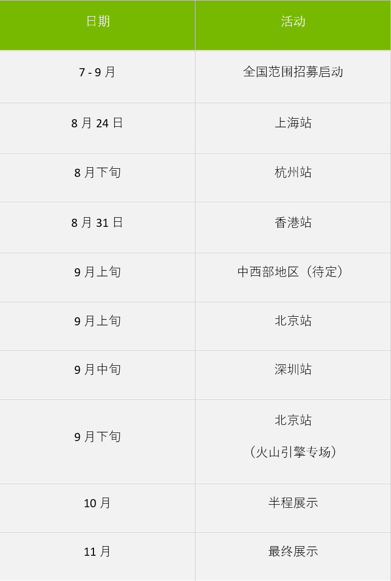 2023NVIDIA初创企业展示将从今年8月起,陆续在不同的城市进行区域巡回路演,并于10月-11月进行半程展示和最终展示。此次活动招募项目包括大语言模型、生成式人工智能、元宇宙、生物医药、自动驾驶等多个领域,面向中国地区创业公司进行招募。