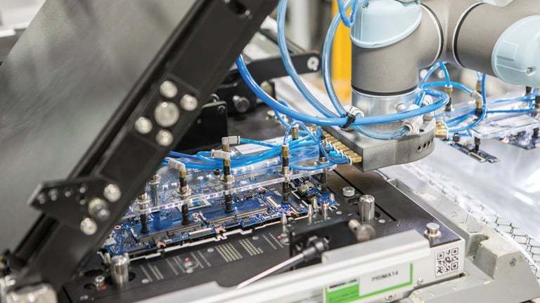 在线测试(ICT)机器人通过从自动传送带上收集板、将其插入 ICT机器并开始测试来缩短测试时间。