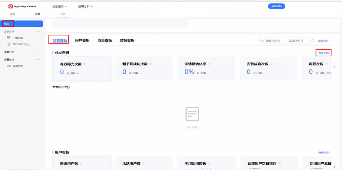 2、分发看板:分发报表中包含的下载、安装及安装留存等数据,可以为开发者提供关键的产品和市场洞察,帮助优化产品策略、提升用户体验并提高商业价值。