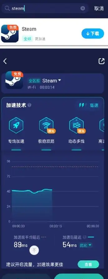 显著增强网络连接质量:通过其自主研发的加速技术,能够有效减少网络延迟(Ping值)和数据包丢失率,从根本上解决鸿蒙手机Steam App常出现的“无网络连接”、“内容加载失败”等错误提示,使得扫码登录、浏览游戏商店等操作恢复如常。