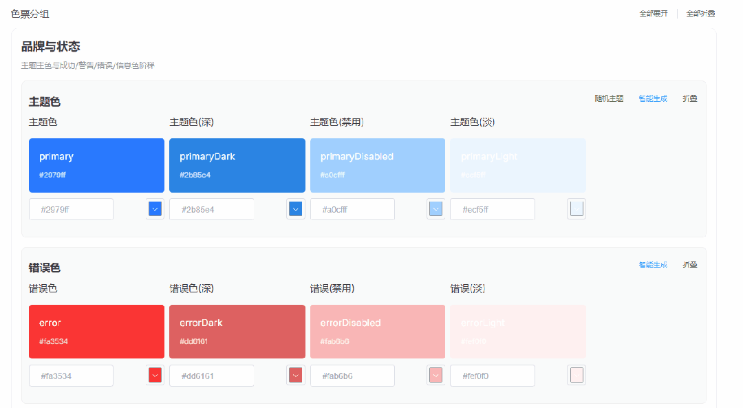智能推断主题色工具:通过设置某个主题色,可以阶梯生成其他色值
