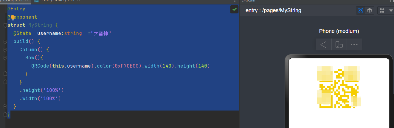 QRCode(this.username).color(0xF7CE00).width(140).height(140)