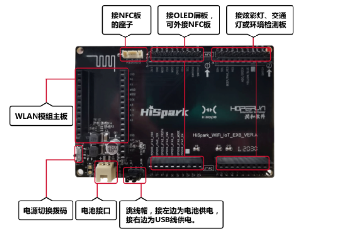 这样,就应该把鸿蒙区别于其他的系统软件,如风河windriver,FreeRTOS,uCos,RTT等。这个是属于一个巨大的生态环境的一个分支,应该是这么解读吧。这个板子的硬件就不详解了。 连接的方法简洁明了。