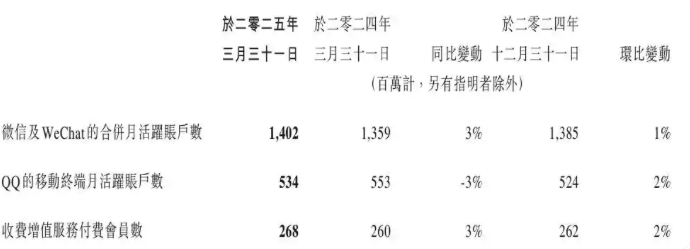 另外,腾讯控股 2025 年第一季度财报显示,微信及 WeChat 合并月活跃用户数达 14.02 亿,同比增长 3%、环比增长 1%。