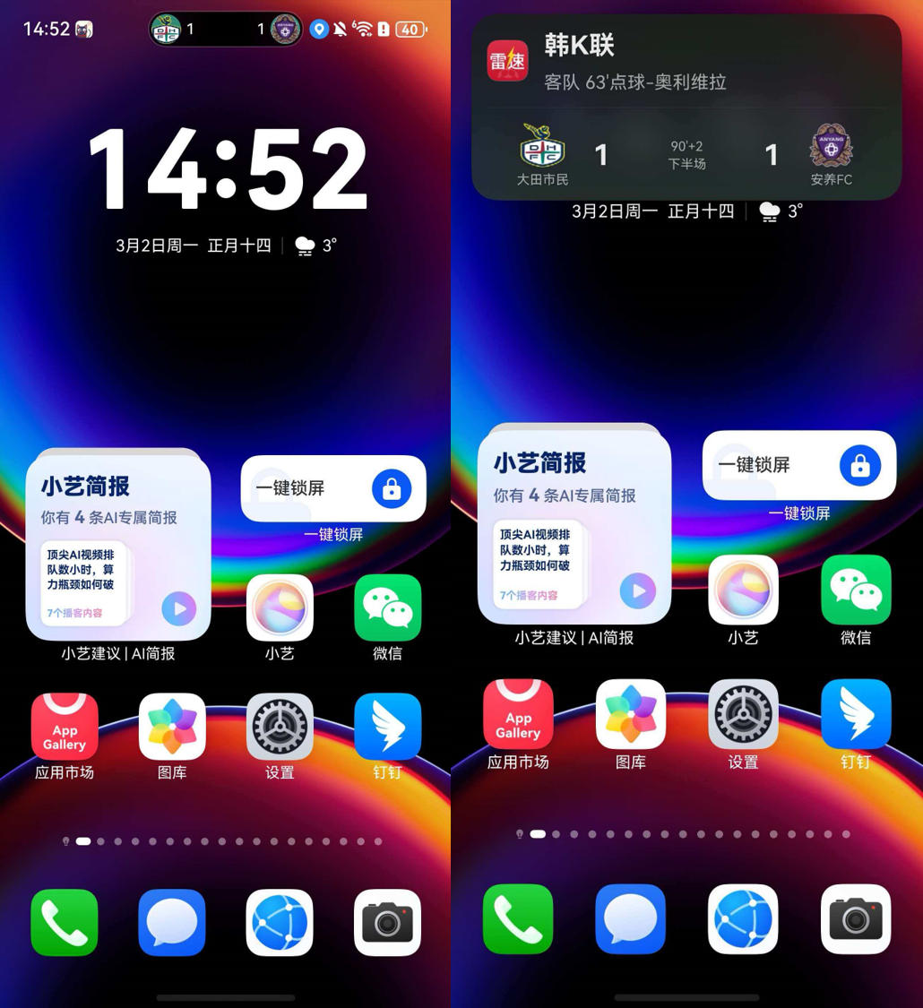 2026年是体育大年,足球世界杯、亚运会、青奥会……好戏一场接一场。鸿蒙实况窗和桌面卡片提前设置,比分、叫号、外卖进度会自动“挂”在屏上。你无需来回切换,更不必反复刷新,只管沉浸于赛事精彩,比分变化与配送动态在同一画面中实时呈现,关键进球和美味抵达都不会错过!