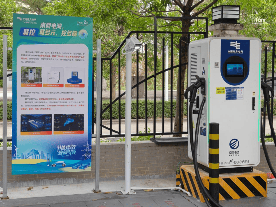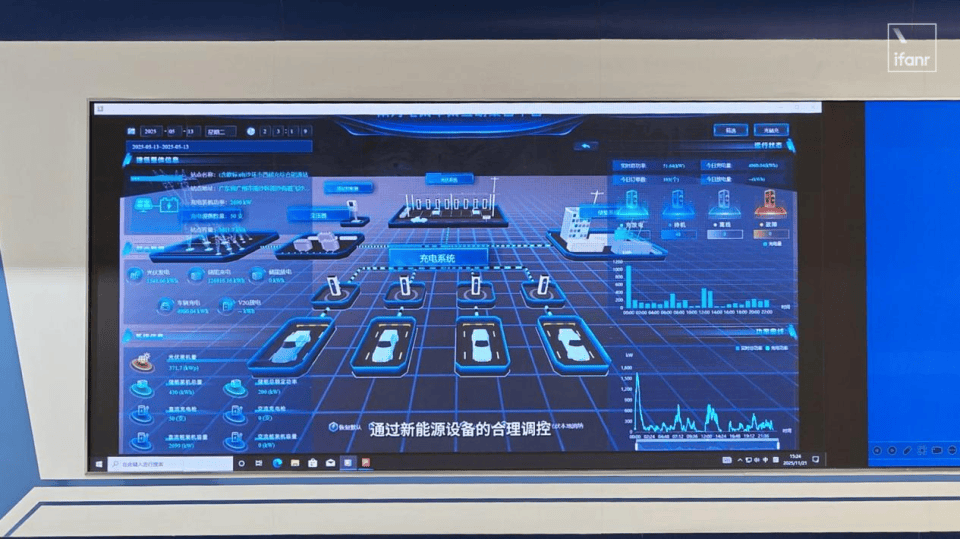 在南沙环市西路超充站,我们不但看到了电鸿化改造之后的充电桩位,而且还能看到站内接入了光伏与储能系统,由电鸿系统统一调度,优先消纳光伏电:既降低碳排放,又在充电高峰期有效缓解限流与排队问题,整体运行更稳定、高效、环保。