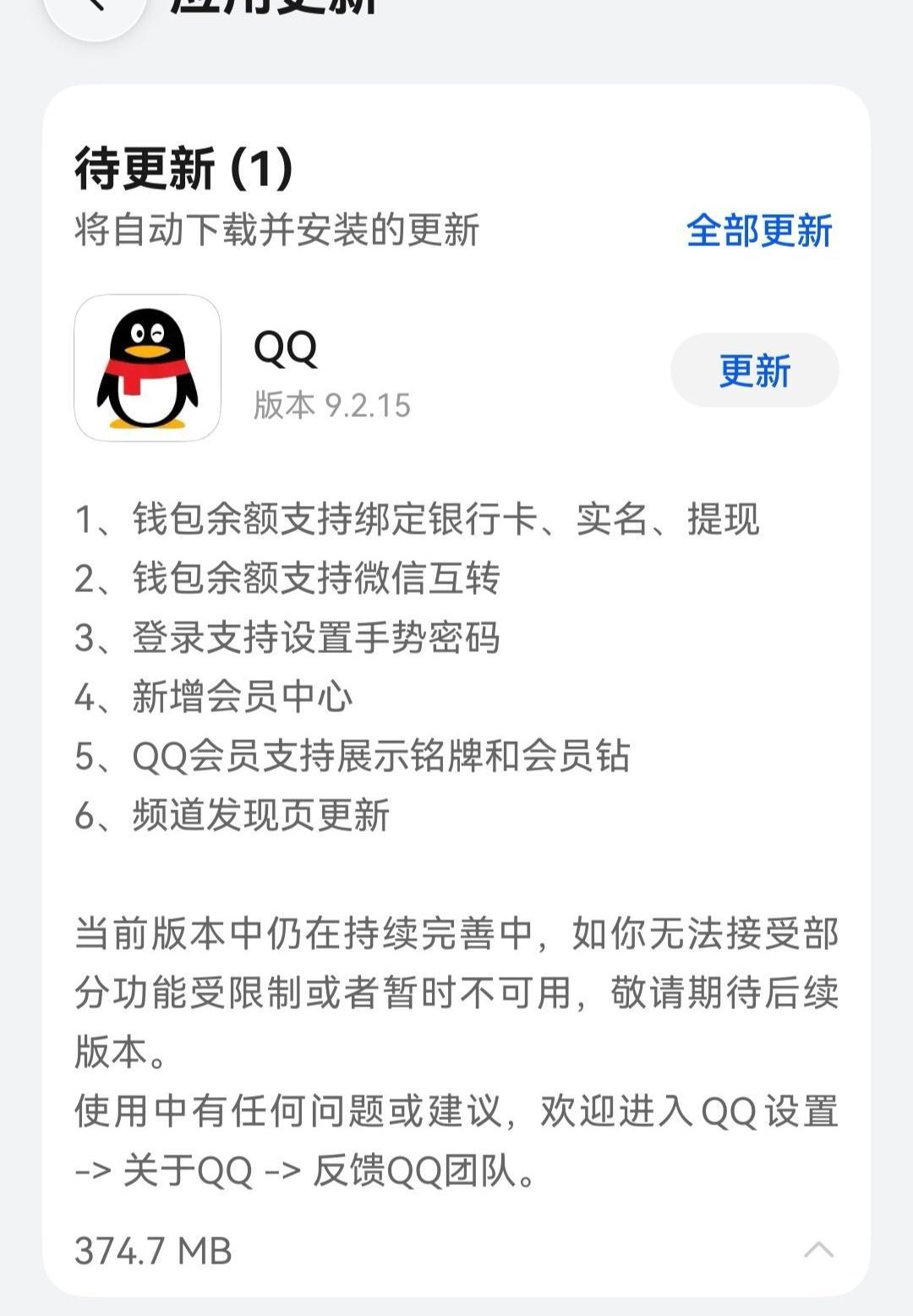 QQ鸿蒙版App推送9.2.15正式版升级,钱包余额支持微信互转等