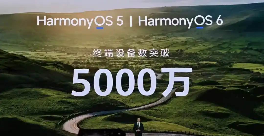 目前搭载HarmonyOS 5和HarmonyOS 6的终端设备数量正式突破了5000万大关。