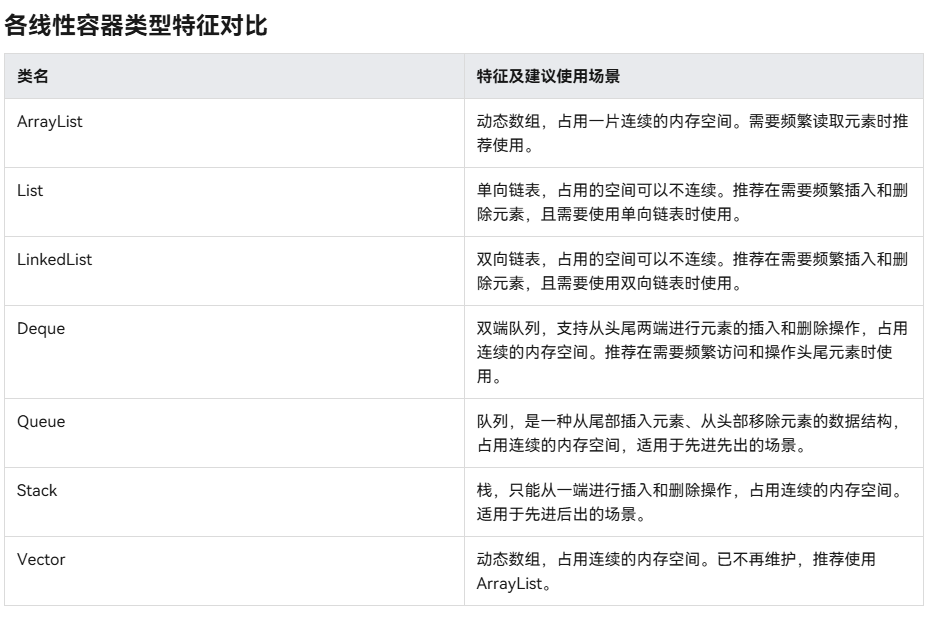 线性容器实现能按顺序访问的数据结构,其底层主要通过数组实现,包括ArrayList、Vector、List、LinkedList、Deque、Queue和Stack