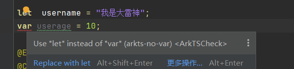 鸿蒙中不能使用var来声明变量了, 只能用let ,用了var会报错