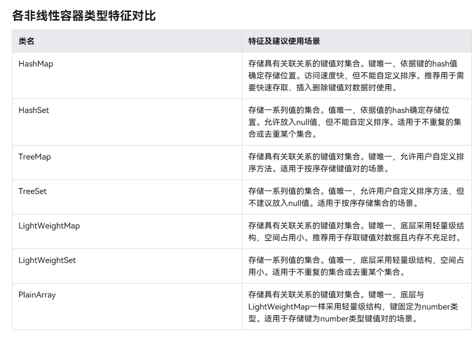 第八个问题 鸿蒙中数据容器都是线性的吗?(我自己问自己的,因为你们都不知道,我们就知道List Array,但是是面试的高频问题)