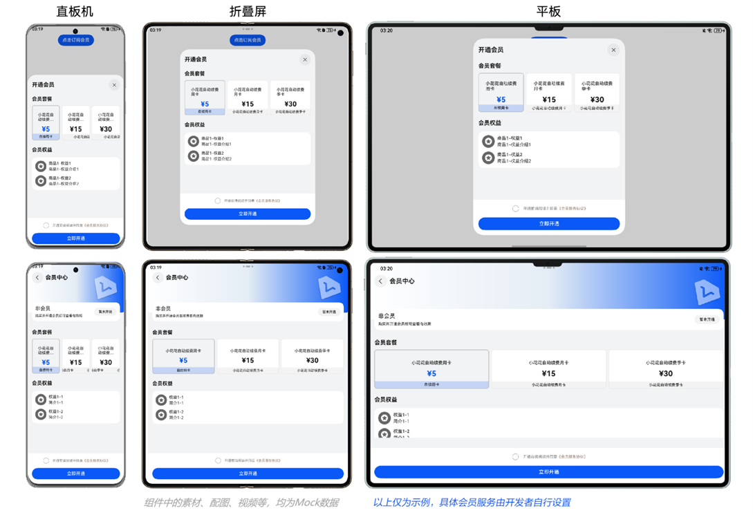 本组件提供了通过应用内支付实现会员开通的能力(自动续期订阅会员及非续期订阅会员),开发者可以根据业务需要快速实现应用会员开通。