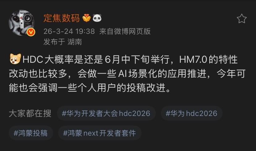 据博主定焦数码透露,华为将在今年6月中下旬举办开发者大会,届时鸿蒙7将正式亮相,带来更大、更智能的AI惊喜。