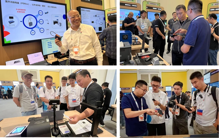 在大会的开源鸿蒙互动体验展区及HarmonyOS生态创新外设展区,国开鸿科技带来了一系列由开源鸿蒙赋能的创新产品。其中,可实现"全场景适配、外设即插即用"的PDBox外设万能盒尤为引人注目,吸引了众多生态合作伙伴及开发者的驻足交流与技术探讨。