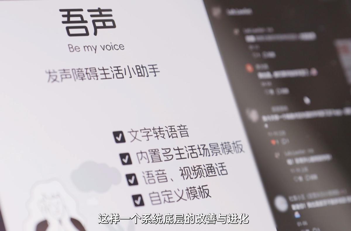 鸿蒙作为一个开放的平台,将系统底层的先进特性共享给开发者,并依托好用的开发工具降低开发成本,帮助开发者将创意转变为现实。比如吾声有一句宣传口号是“让小艺做你的嘴替”,这就充分利用了鸿蒙系统级的AI 智慧助手“小艺”的语音对话功能,帮助因各种原因短暂失声的你,也能顺畅与外界交流。吾声BeMyVoice还加入了实时语音转文本功能,让听不见的失聪者可以看见信息,极大提高生活与工作的便利。