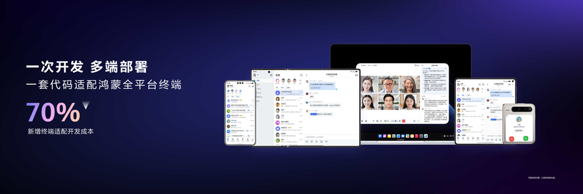在此过程中,鸿蒙“一次开发、多端部署”的技术方案吸引了飞书的关注,成为其应对挑战的理想解决方案。为此,在启动鸿蒙版开发初期,飞书坚定选择采用这一方案。实践证明,鸿蒙的开发方案不负期待,真正实现了一套代码覆盖手机、平板、电脑等不同类型设备,让飞书在新终端适配上的开发成本降低了 70% 以上,成功以高效、低成本的方式实现多端统一办公体验。