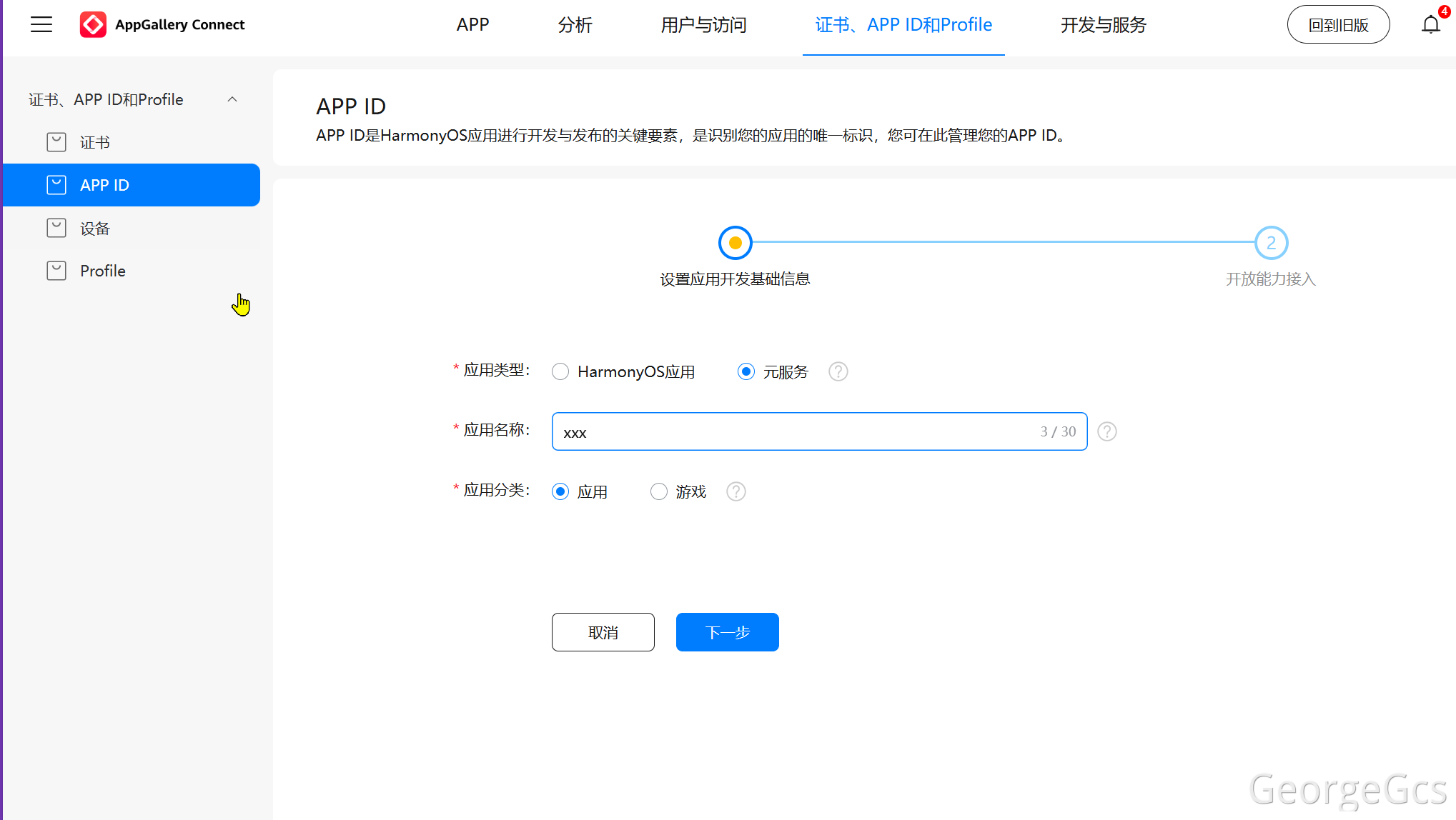 元服务开发需先在华为应用市场开发者平台(AGC)完成项目注册,步骤如下: