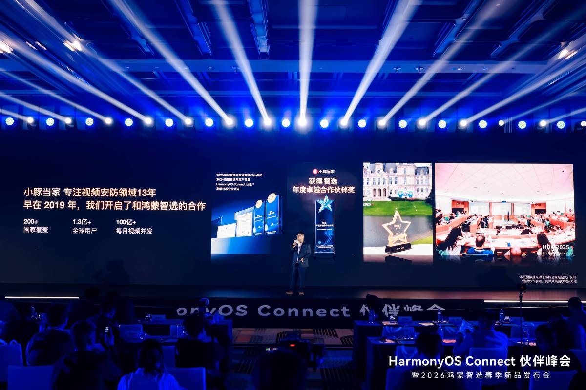自2019年与鸿蒙智选开启深度合作,小豚当家已实现全球200多个国家和地区的产品覆盖,为1.3亿全球用户提供安全守护服务,每月视频并发量突破100亿。凭借扎实的技术积累和市场表现,小豚当家稳居鸿蒙智选室外摄像头销量榜首,成为生态内智能安防品类的标杆品牌,并荣获2025年鸿蒙智选年度新品奖,此次峰会更是带来了旗下旗舰产品鲸瞳Max的亮眼市场成绩。
