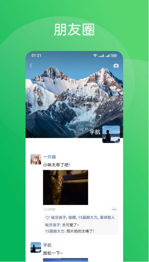 -朋友圈:可与朋友分享不同类型的内容,且支持设置地理位置、选择可见范围等功能;