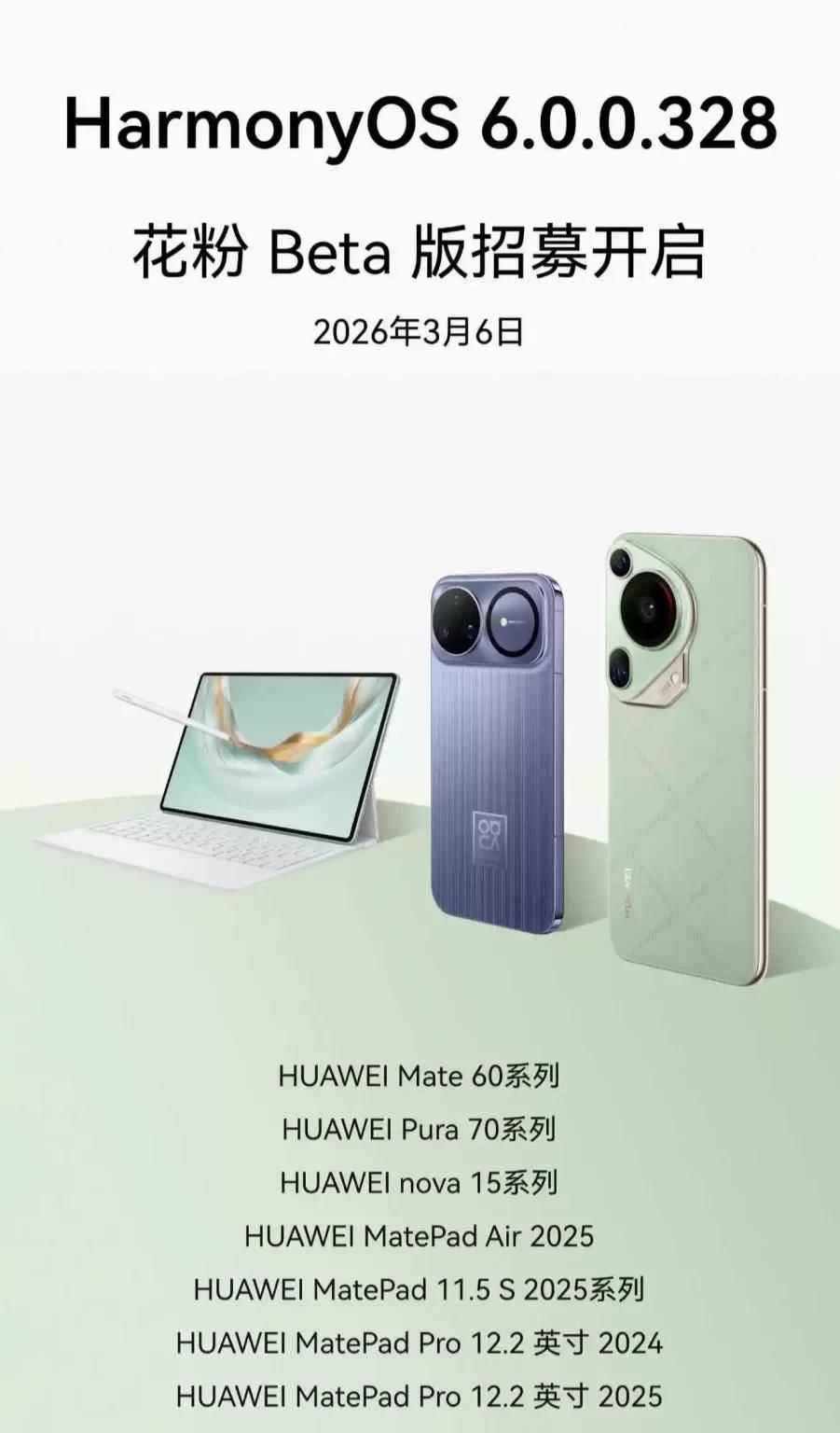 华为已宣布推出全新的HarmonyOS 6软件版本,并启动了面向数十款设备的Beta测试计划。首批设备将升级至 HarmonyOS 6.0.0.328 版本。