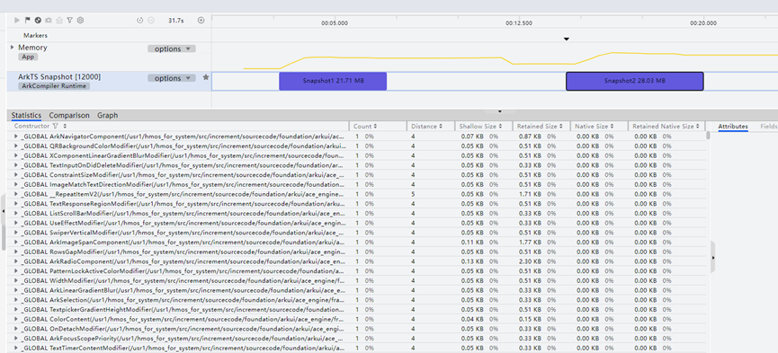 对应的运行时调优内存快照界面: