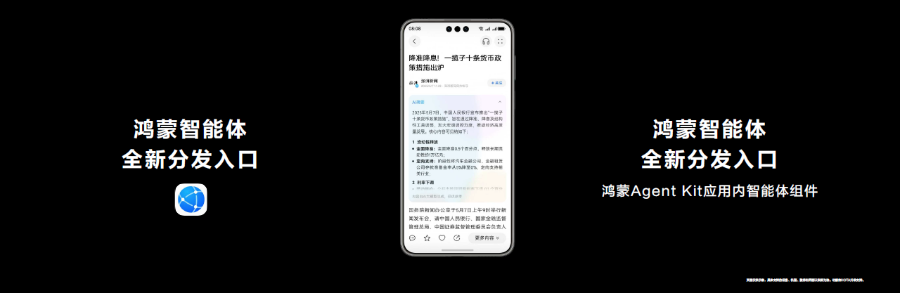 随着全新鸿蒙智能体框架HMAF正式发布,华为通过更自然的交互方式、更强大的应用智能化自主能力、更高效的连续服务闭环、更协同的多智能体合作,打造无处不在的智能体验。作为鸿蒙系统级AI Agent,小艺和华为视频、华为音乐、华为阅读和华为浏览器等鸿蒙应用相结合,更精准地捕捉用户意图,深度理解用户偏好,为用户提供更加符合实际场景和需求的智能个性化影音内容资讯等数字内容体验创新。