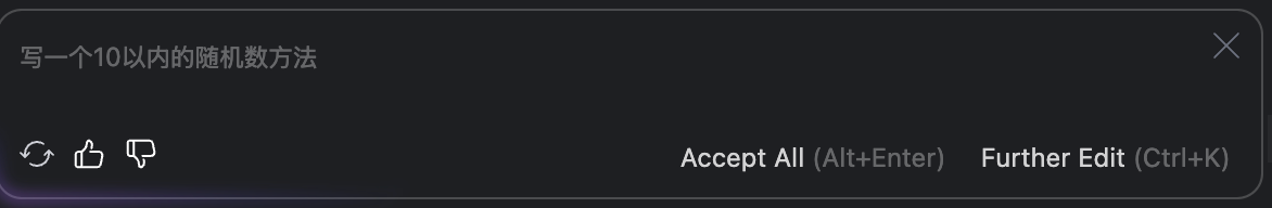 我让CodeGenie给写一个10以内的随机数方法,然后完成后我点击Accept All,当然此处熟练后可以使用快捷键提升效率。