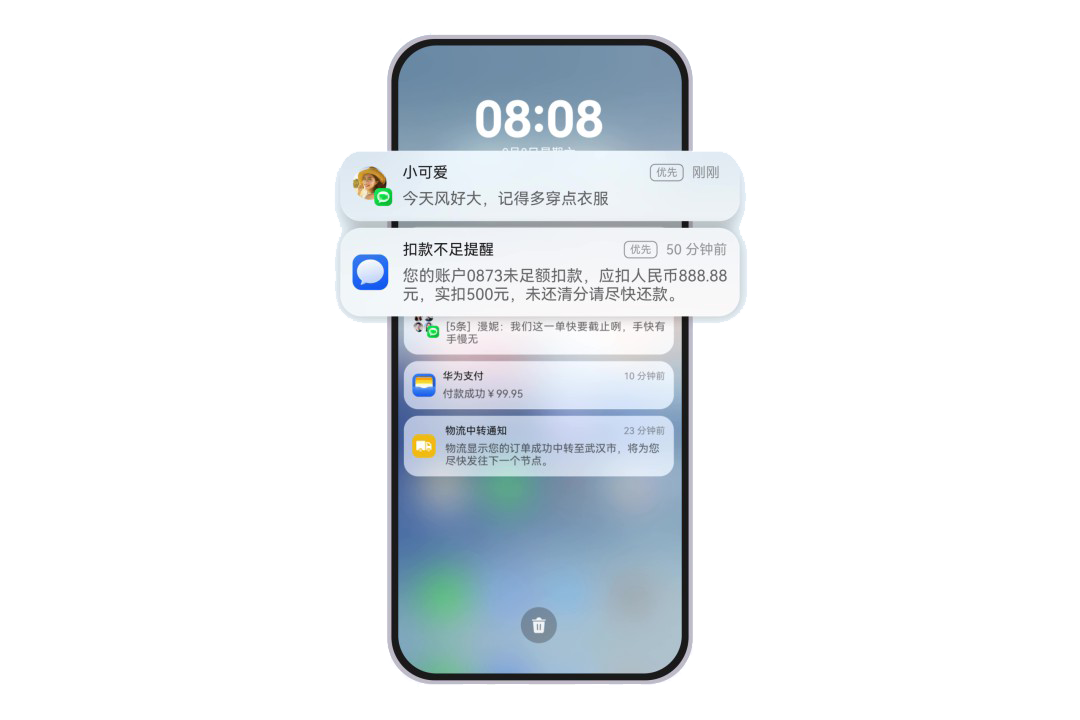 在应用通知泛滥的今天,如何为用户打造更加高效、智能的通知体验——HarmonyOS 6.0.0.328 版本为广大机型用户带来“优先通知”功能,用户通过“设置 > 通知和状态栏 > 优先通知”开启该功能,还可“自定义”添加关键词或选择“智能识别”重要通知,系统即可在锁屏界面、通知中心自动优先展示重要通知,帮助您快速获取关键信息,带给您更高效的体验。