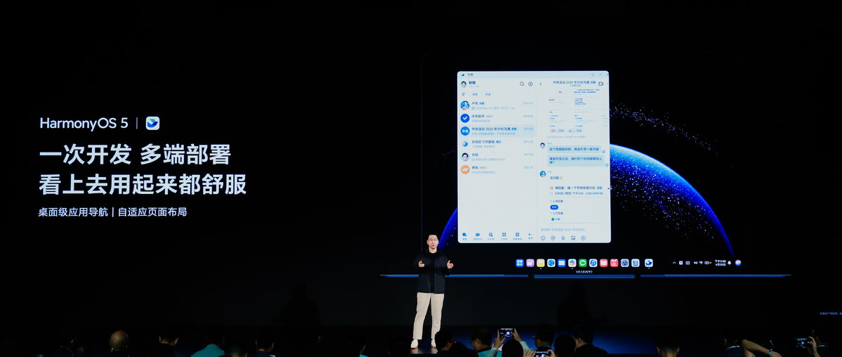鸿蒙小助手 2025-05-09 10:00:00 发布5月8日,华为在深圳举办鸿蒙电脑技术与生态沟通会,鸿蒙操作系统首次在电脑端亮相。作为首批完成鸿蒙电脑适配的办公应用,飞书产品专家张鲁出席分享了鸿蒙版飞书在电脑端的最新适配进展。飞书用“一周适配”的高效率和“多端一致”的流畅体验,证明了鸿蒙开发框架的可行性,也为鸿蒙用户带来前所未有的办公体验,打造AI时代先进的生产力平台。