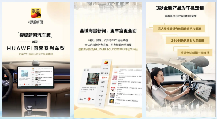 特别值得一提的是,搜狐新闻与华为问界全系车型达成合作,支持 AI 智能语音播报、多种方言、倍速播放,拥有科技、财经、汽车等 13 个精选频道,为车主提供了优质的新闻收听体验。