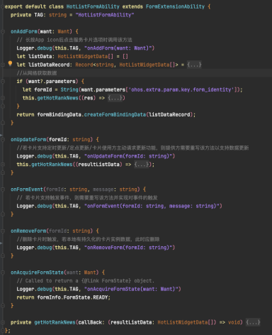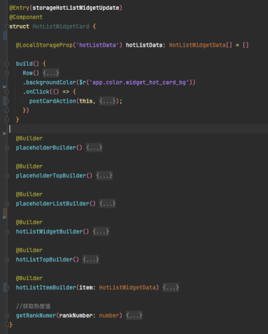 卡片页面文件 HotListWidgetCard.ets 用于卡片展示页面,展示卡片元素,处理卡片跳转事件