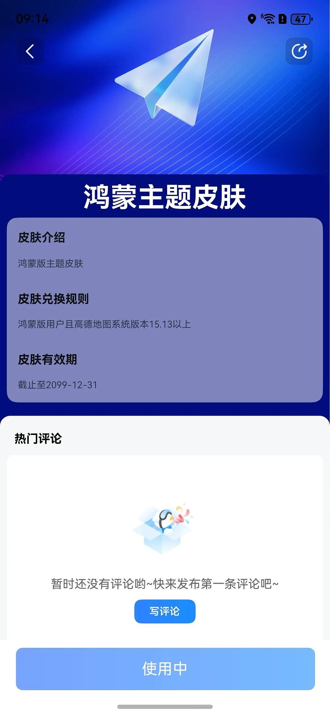 鸿蒙版高德地图专为华为鸿蒙系统打造了独有主题皮肤可在高德地图APP内部的皮肤广场兑换使用鸿蒙主题皮肤。